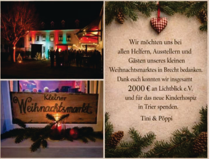 • Weihnachtsmarkt in Brecht – Spendenübergabe